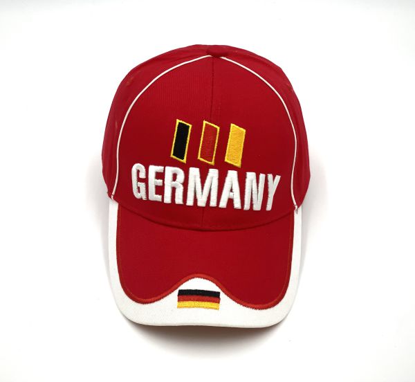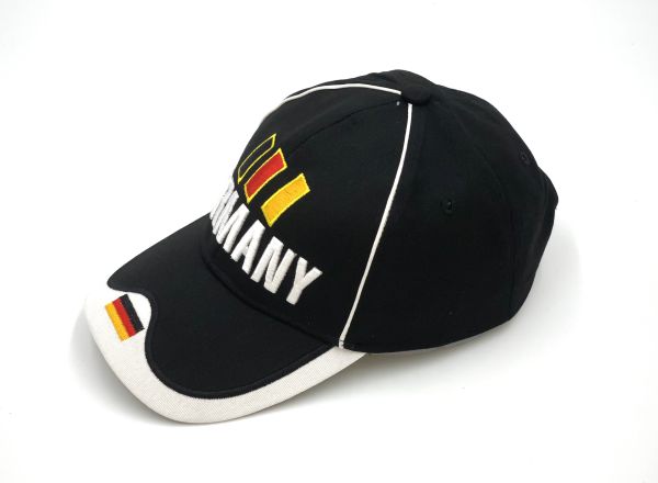 Ein Cap für den Sommer mit dem Aufdruck Deutschland in zwei Farben und Einheitsgröße.
