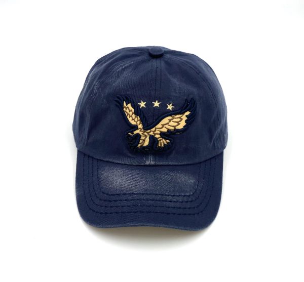 Jeans Cap mit Adler Symbol und drei Sternen in verschiedenen Farben.
