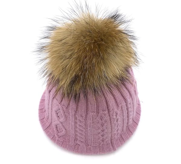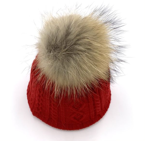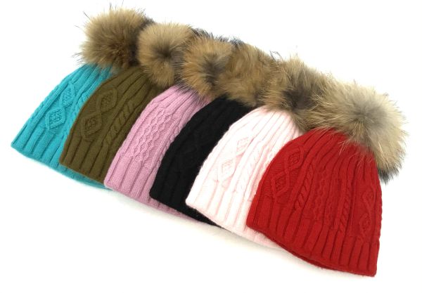 Damen Bommelmütze mit echtem Fell und die Mütze ist aus