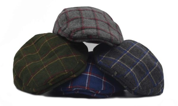 Schiebermütze für den Winter mit kariertem Muster, mit einem Gummizug hinten aus