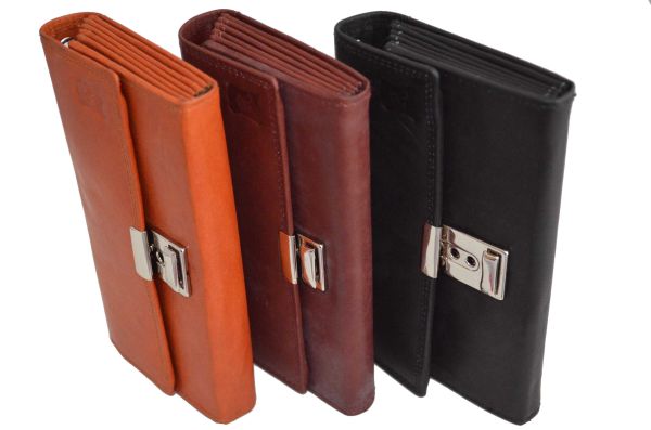 Mit Münzfach, Kleingeldfach und Fächern für Geldscheinen.