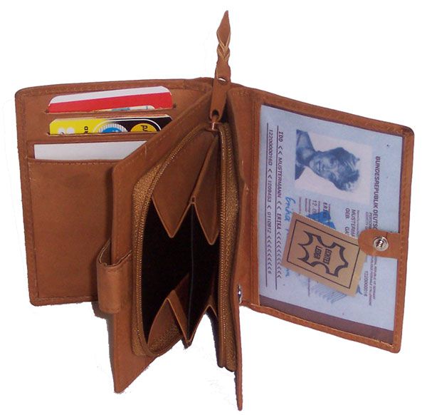With ID-case, credit card and coins pockets, as well as visit cards case.