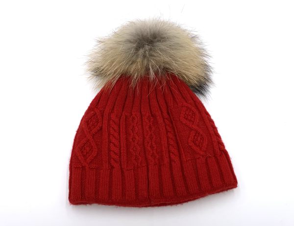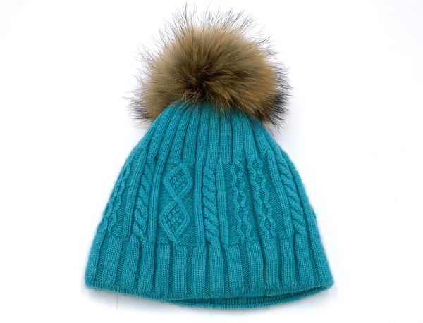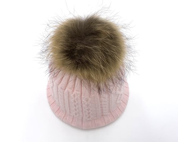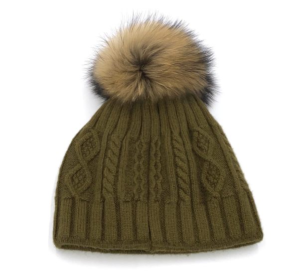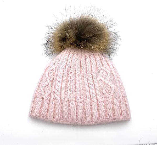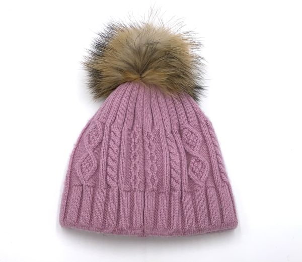 Damen Bommelmütze mit echtem Fell und die Mütze ist aus