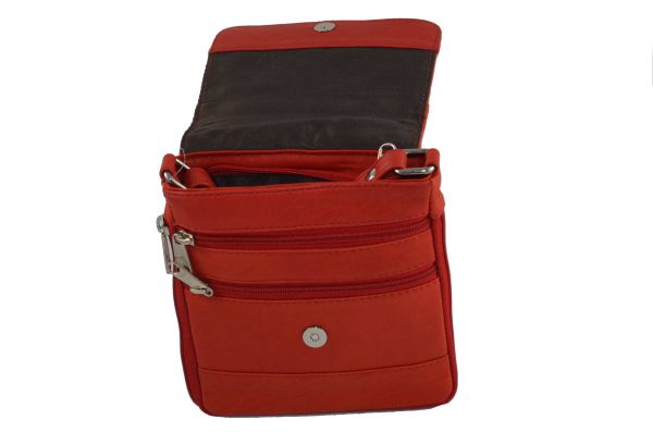 Kleine Leder Tasche für Damen mit Reißverschluss hinten und Magnet-Schliessungssystem vorne.