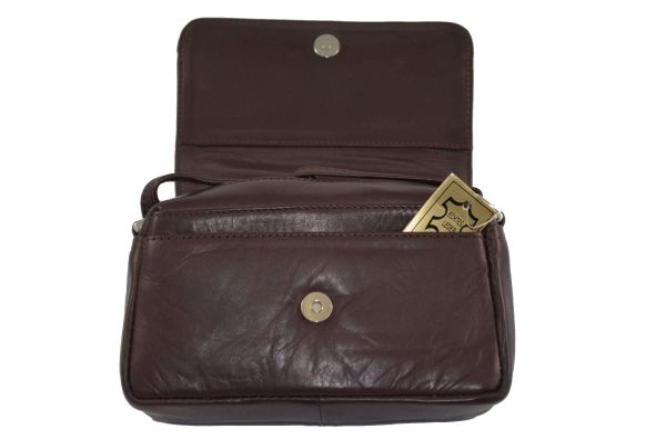 Kleine Leder Tasche für Damen mit Reißverschluss hinten und Magnet-Schliessungssystem vorne.
