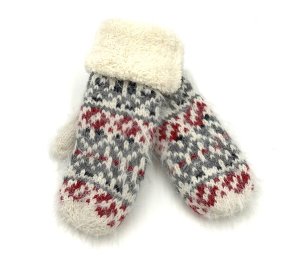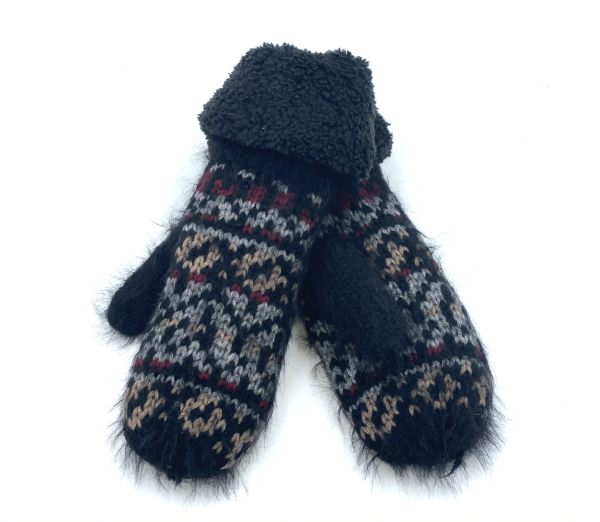 Damen Faust Handschuhe mit Kunstfell gefüttert aus