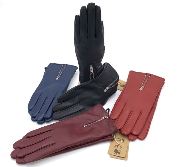 Hochwertige Lederhandschuhe in verschiedene Farben mit elegantem Reißverschluss.