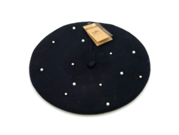 Baskenmütze für Winter mit Perlen geschmückt aus
