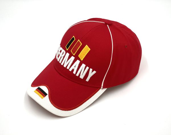 Ein Cap für den Sommer mit dem Aufdruck Deutschland in zwei Farben und Einheitsgröße.